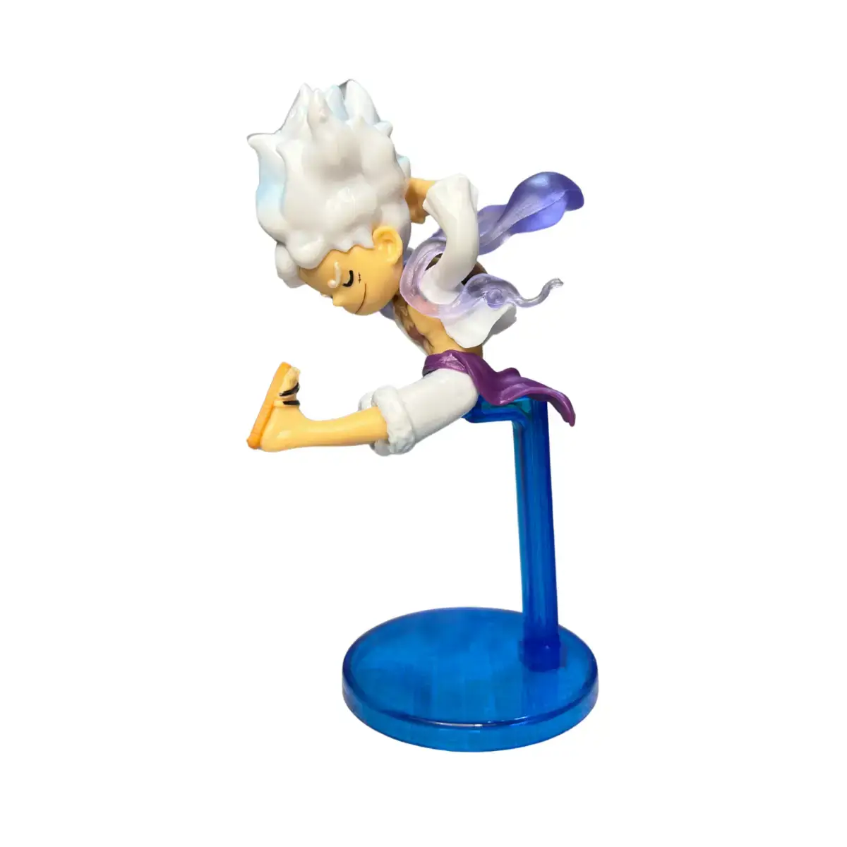 Supported by a translucent blue base, this elegant pose is ideal for fans who appreciate the spiritual and symbolic elements of Gear 5. Whether you’re curating a display of One Piece transformations or simply love the depth of Luffy’s character, this is the figure to complete your collection.